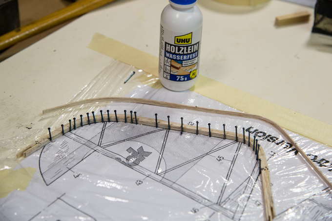 Die zugeschnittenen Leisten wurden 24Std. ins Wass gelegt