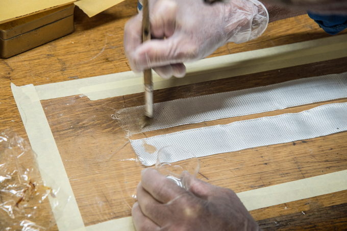 Schritt 1: Gewebeband mit Harz durchnetzen
