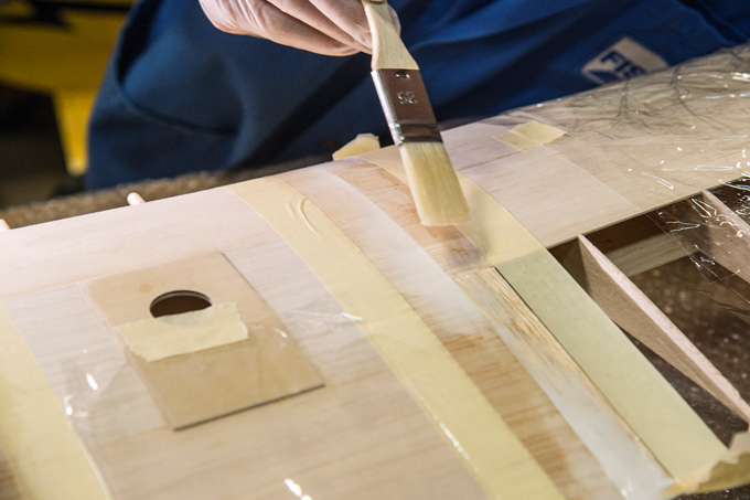 Auf dem Flügel, entlang der Abdeckbänder gut mit Harz