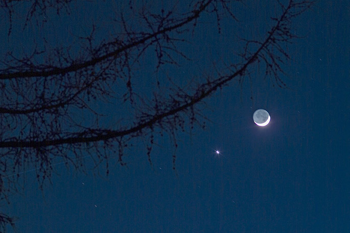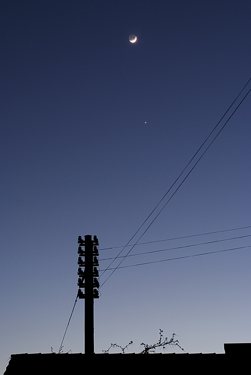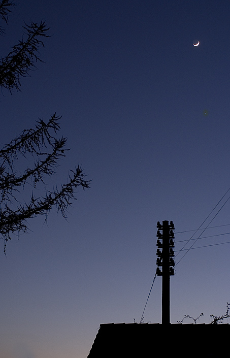 | Frühjahr 2007, in der blauen Stunde -Venus und Mond in harmonischer Eintracht | |||