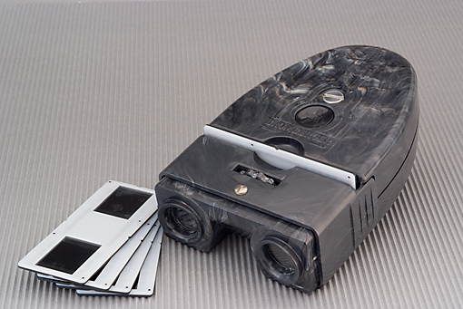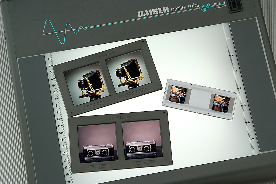 spezielle Stereorahmen montiert. Links: Rahmen für 6x6cm Dias Rechts: Stereorahmen für Kleinbilddias |