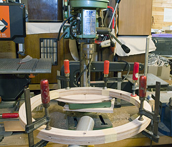 Die Holzringe,12mm x 30mm x 360mm Innendurchmesser, habe ich ebenfalls CNC