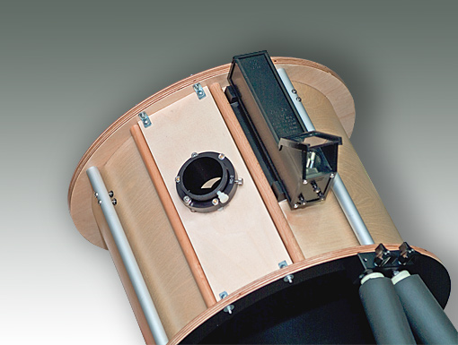 Nachträglich montiert, das Telrad. Nach schlechten Erfahrungen mit einem red point finder, stelle ich fest dass es zum Telrad nicht wirklich eine befriedigende Alternative gibt. Nach schneller Justierung am Saturn zeigten sich die Vorzüge des genialen Finders. Trefferquote= 100%. Warum ich das Ding nicht von Anfang an installiert habe.....! Das Teil sieht echt hässlich aus.....darum. Die Devise, Funktionalität vor Designe, war mir doch wichtiger. |
